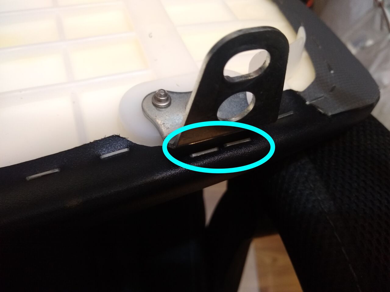 シートを固定する為のステーがリベットで固定されているのですが、ここの部分のシート、エアタッカーじゃないと綺麗に打てないのがわかります。