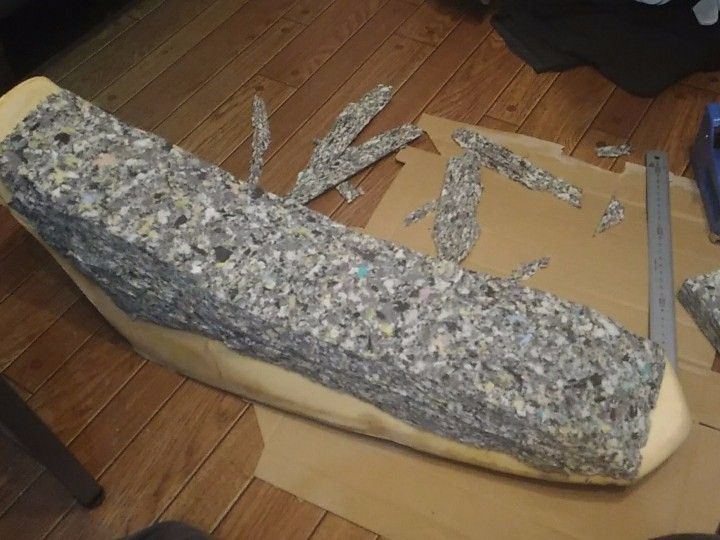 んで、ここで写真を撮り終えたが最後。作業モードになってしまっていきなりで削り終えた後の純正シートスポンジ。