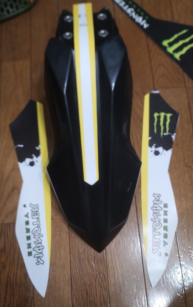 DトラッカーX用って書いてるんだけど、フェンダーがKLX用のサイズだったり、カウル固定用のねじ穴避けがされてなかったりと、専用品買ったけど自分で切って加工してって感じで全然あってない(サイドゼッケンに至ってはそもそも大きさがまるで収まってない)からお勧めはできない。。