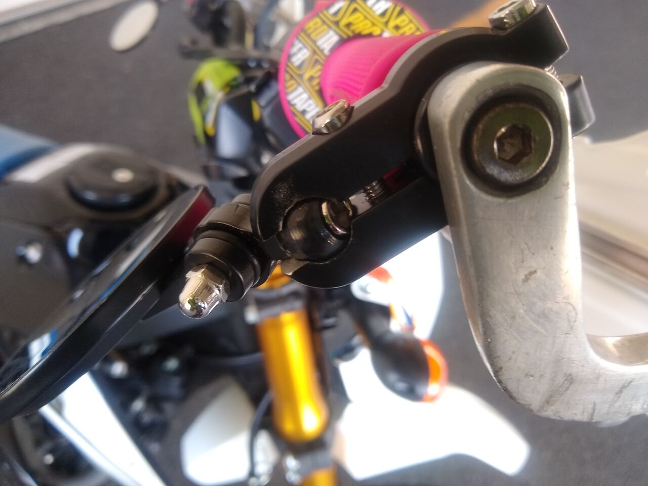 多くのバイクはクラッチレバー、ブレーキレバーにミラーの固定用のネジが切ってあるんだけど、こう言ったOPにはねじ穴はついてなくて。
