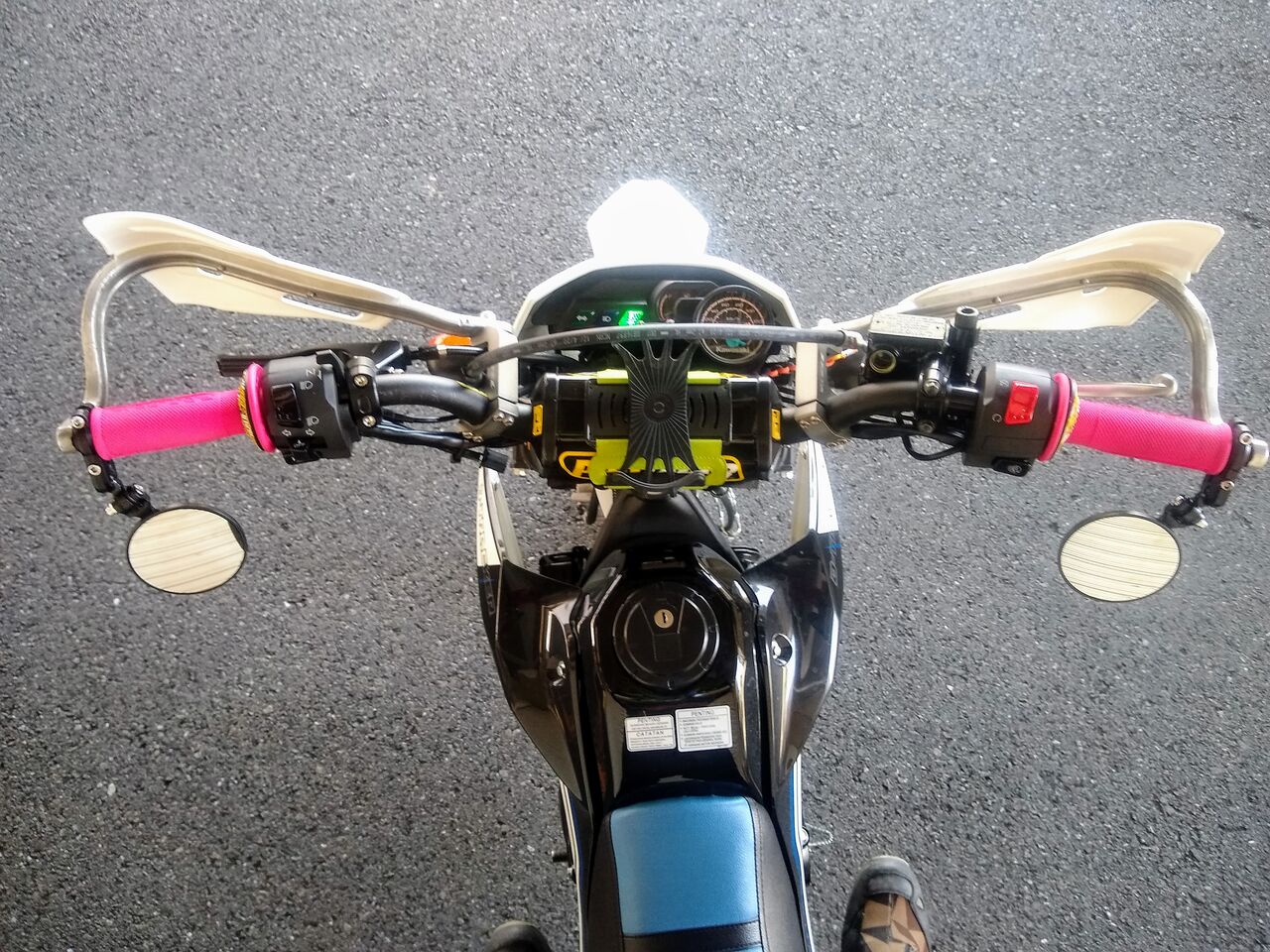 でもバーエンドにすると変わらずミラーから行くから本当はコントロールエリアからマウントしたかったんだけど、そのスペースがなくて結果的にバーエンドミラーに。(これのおかげもあって見やすい)