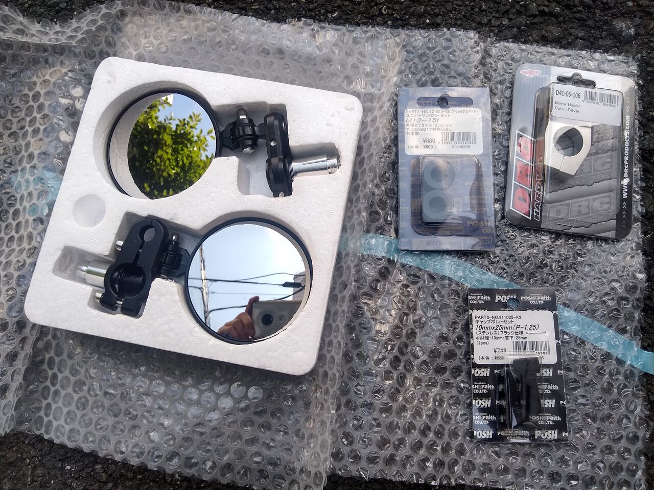 まず左側はすでにミラーホルダーがないので追加すべくDRCから出ているこのミラーホルダー(他の製品より安かった)