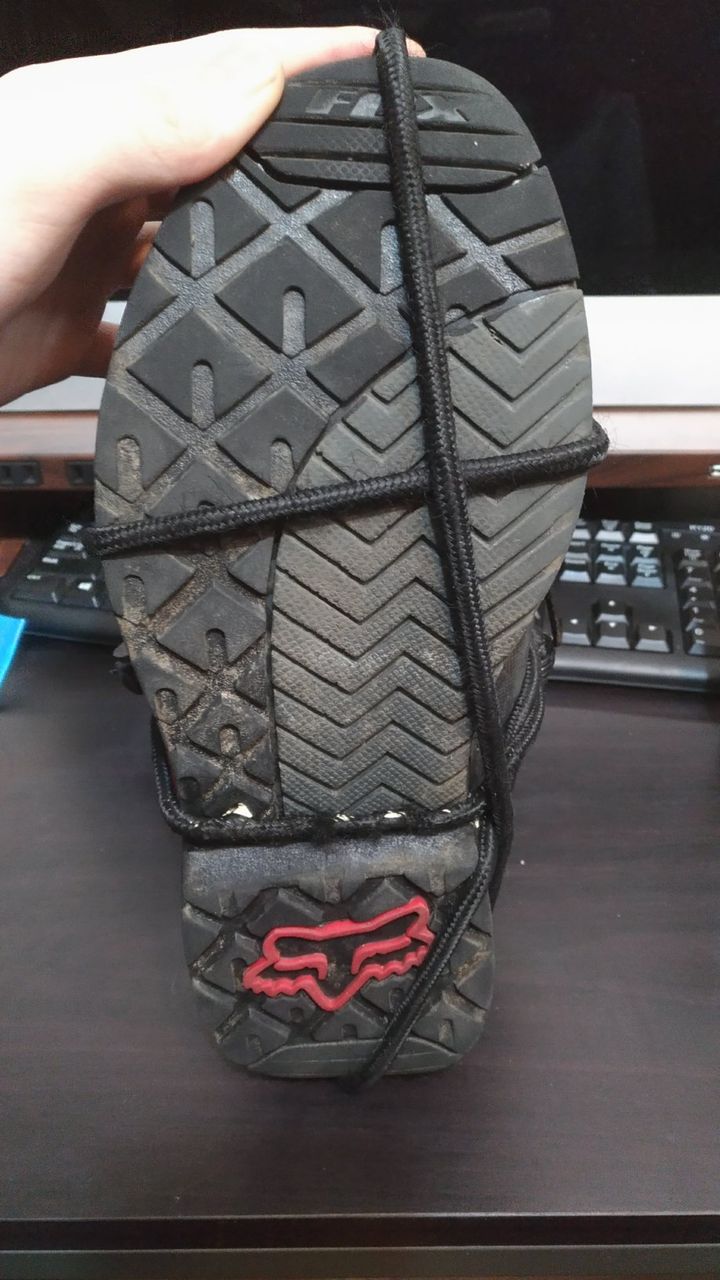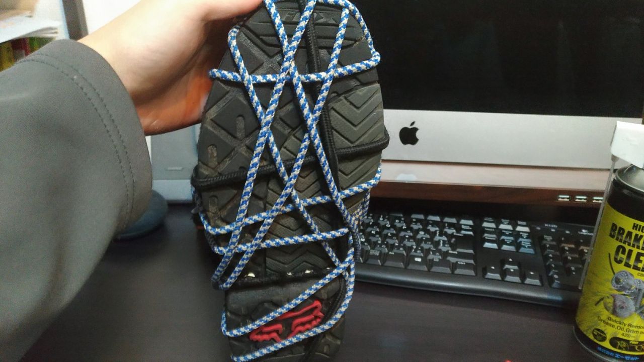 似た様なものを探すもオンロード向けのショートは沢山あるのですがソールがでこぼこしていて、泥の上でもそれなりに滑らない物は見つけられず。。。。