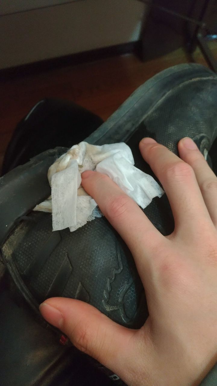 まずは、靴の掃除から行いますが、中途半端に残ってる接着剤と汚れを落とすためにこれを使います。