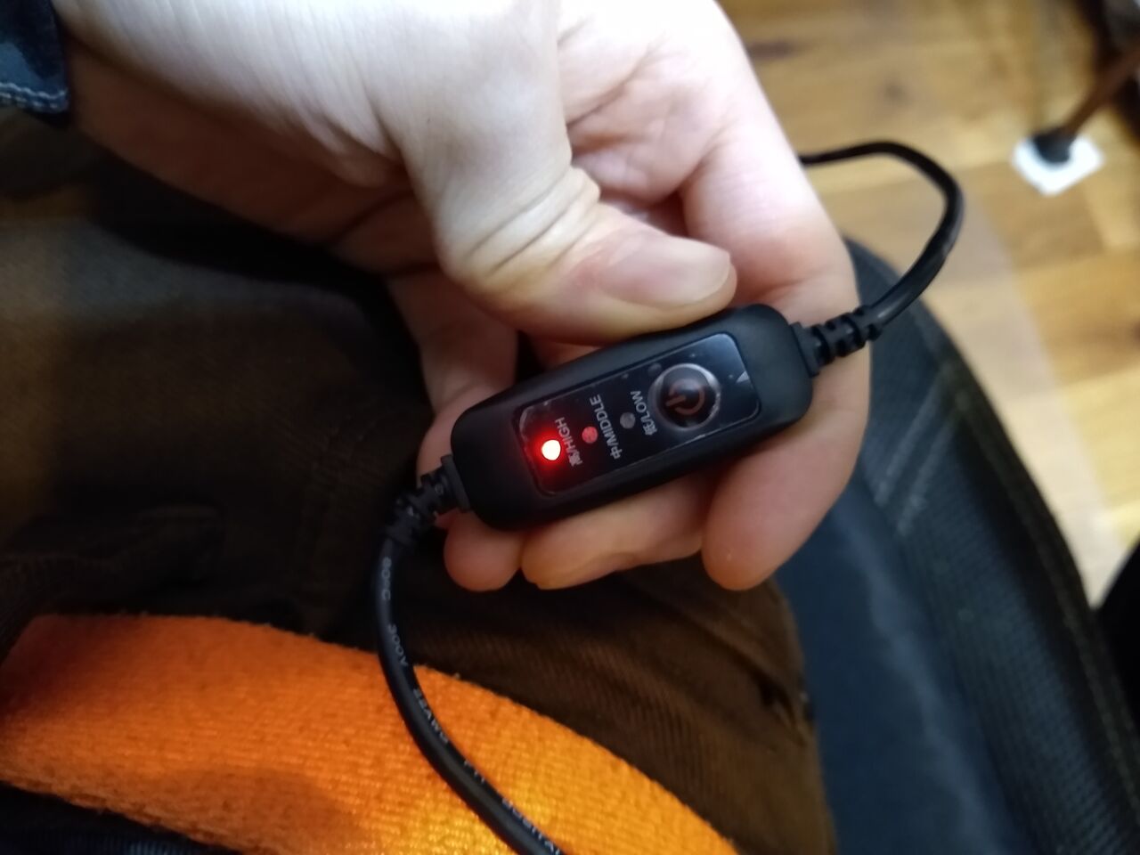 僕はカーゴパンツが好きで履いてるんだけど、太ももあたりのポッケにモバイルバッテリー入れて、そこから給電してて、バイクから降りても暖かいままでいられる。