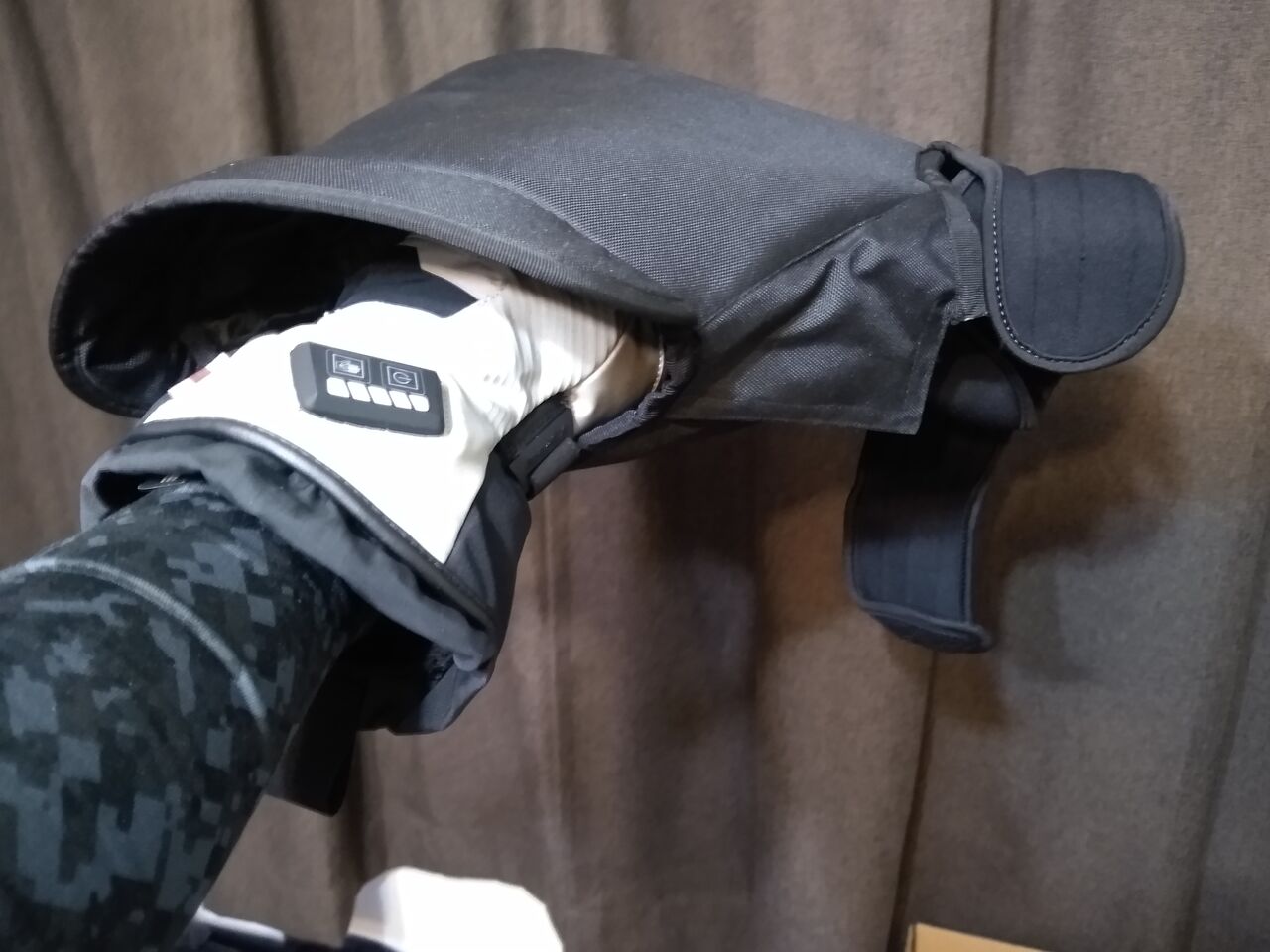 大きめの間口とは言え、マジで全然入らなかったコミネの電熱グローブがコレに入れた時どんな感じなのか。。